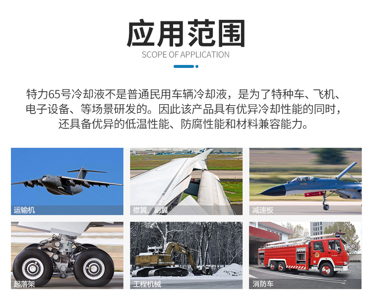 為了滿足特種裝備在特殊場景下的冷卻要求,國軍標GJB 6100-2007對冷卻液提出了更高的要求:大比熱容、優良的低溫性能、優良的防腐能力。65號冷卻液正是契合這一標準的產品,已被多個科研院所、部隊單位用作制式冷卻液。主要有以下特點: